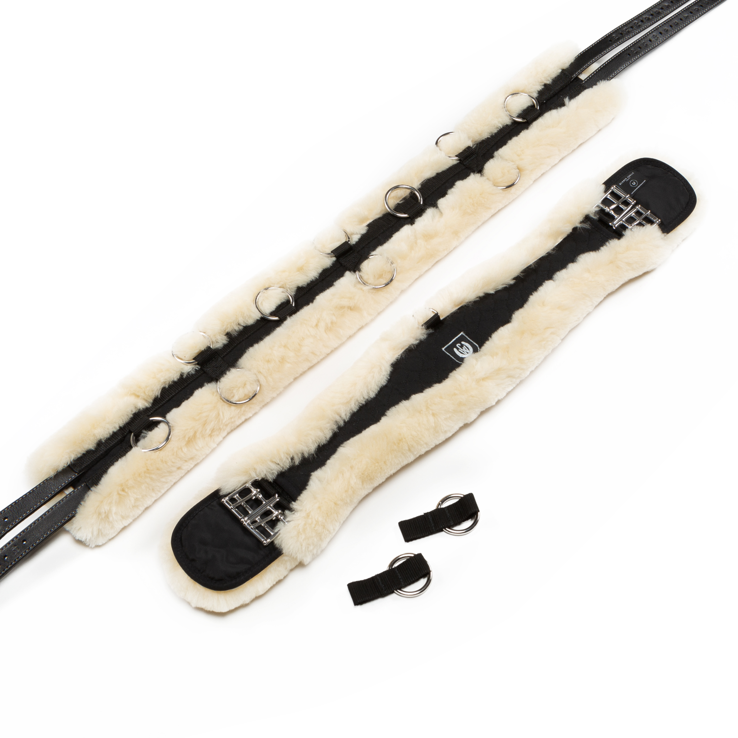 Surcingle crafted in lambskin and including short girth. Fitted with 12 metal rings for individual work on the lunge. The Pony size is for horses with a belly girth of 145 – 180 cm, while the Warmblood size is for horses with a belly girth of 175 – 210 cm.