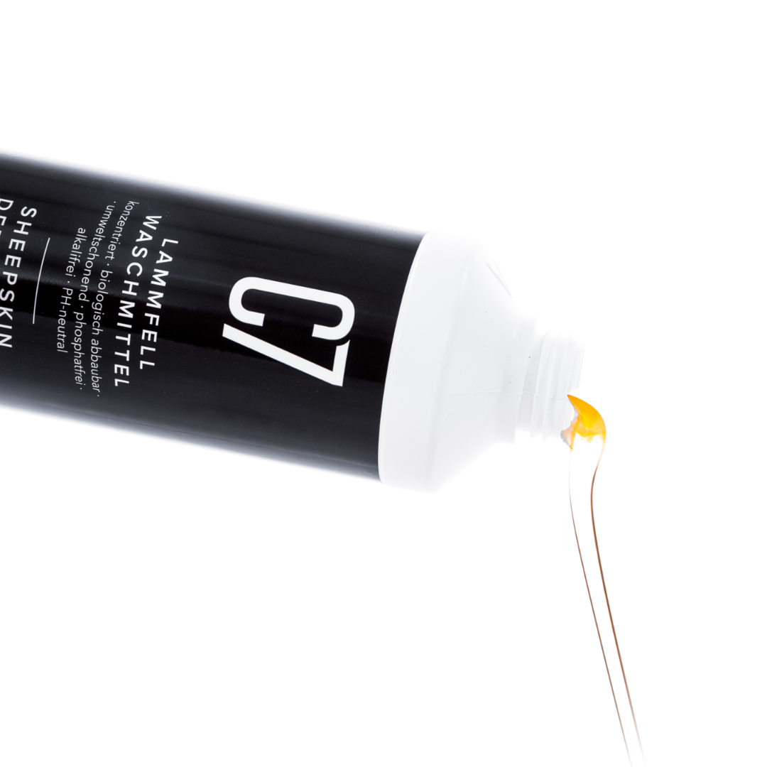 Wash: If needed, use the wool cycle (30 °C) with a special sheepskin detergent like C7. Regular detergent can damage the leather.
