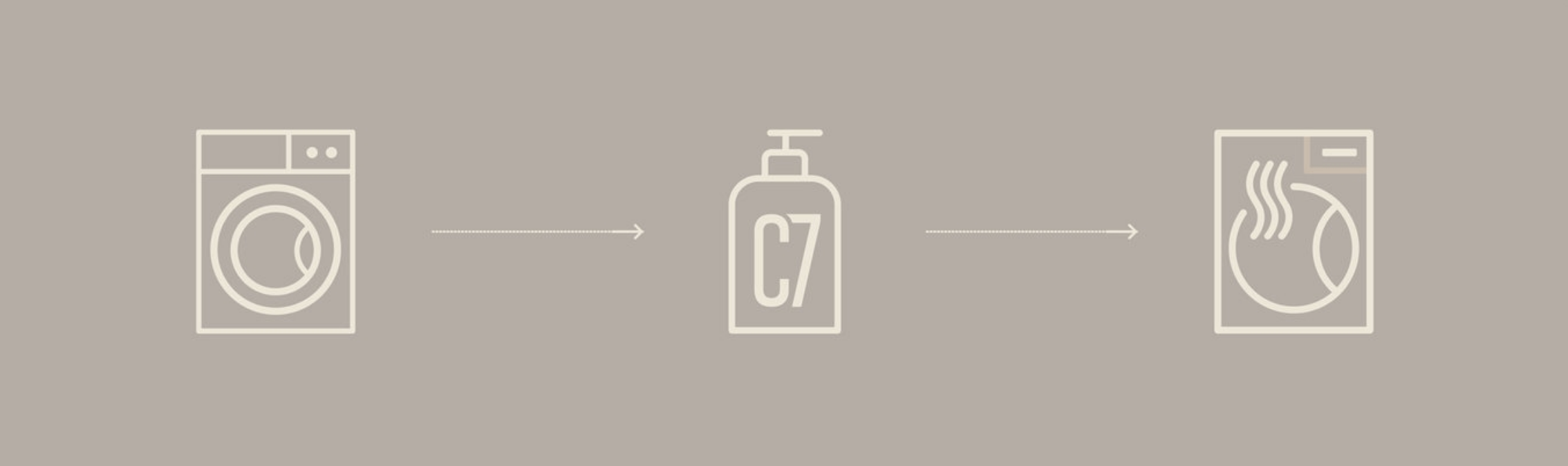 Machine washable on the wool cycle at 30 °C, ideally with our specially developed C7 detergent, which is gentle on leather and wool while being environmentally friendly. After washing, products can be gently dried in the dryer at low temperature or air-dried in the shade – regular shaking and brushing preserves volume and suppleness.